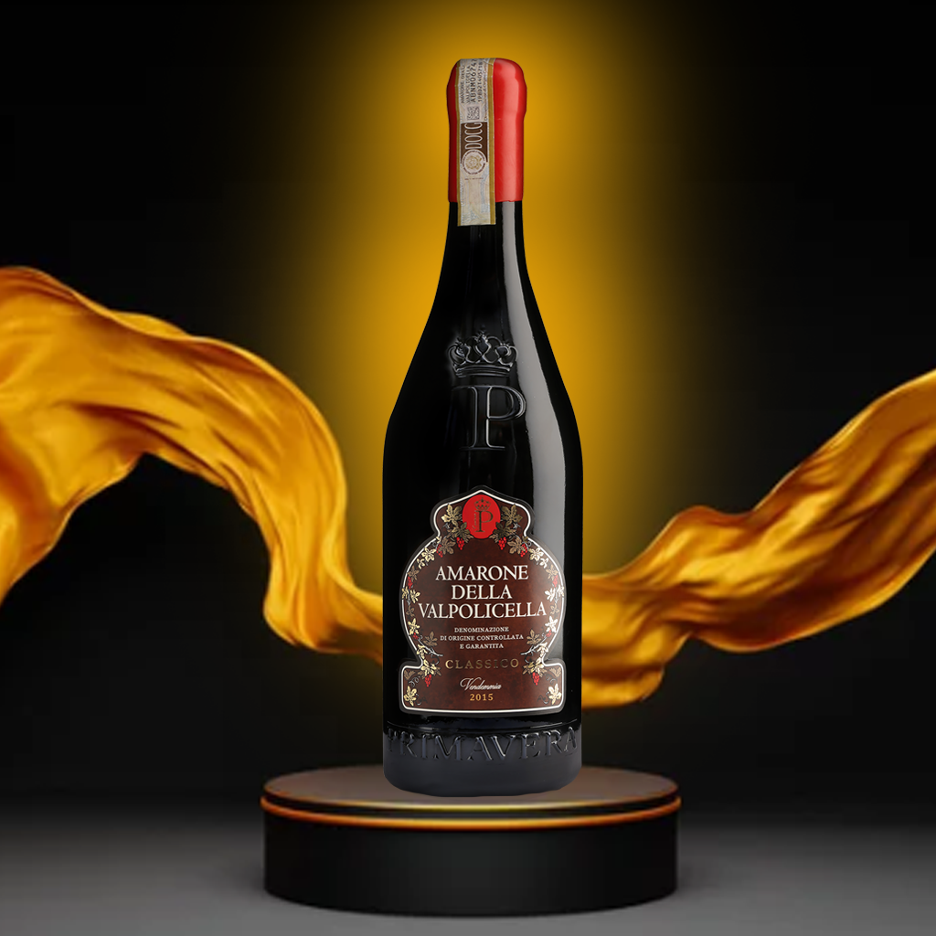 Il vino viene affinato in botti di legno per circa 18 mesi. L’Amarone della Valpolicella D.O.C.G., è un vino rosso ottenuto dall’appassimento di uve selezionate, raccolte a mano e pressate al momento indicato dal Consorzio di Tutela.